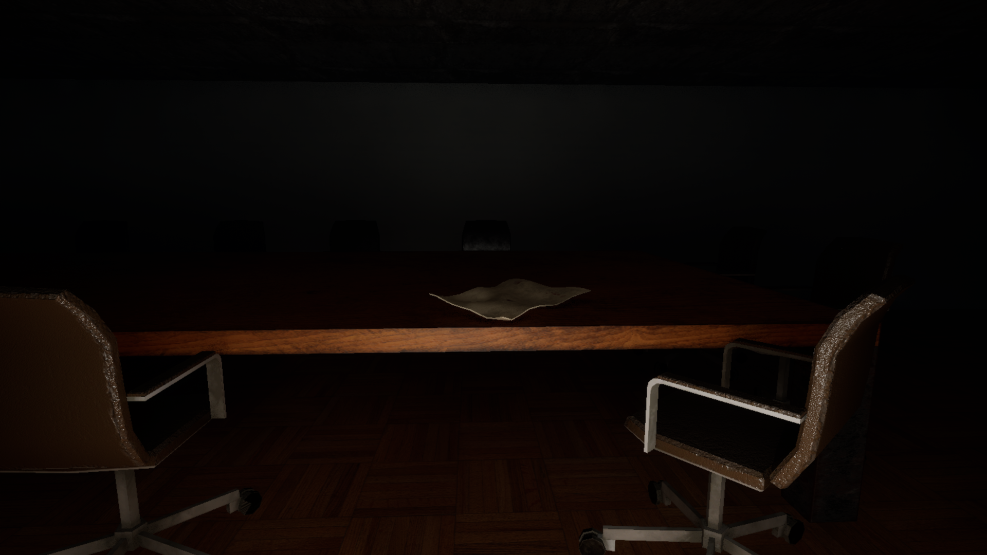 There are many rumours going around about the Old abandoned office building in town. Many people think that some sort of accident occurred there while others think that the building is haunted or even cursed. The front of the building is locked up tight, but you find that the back entrance has been left unlocked possibly by coincidence or perhaps something wants you to enter. You decide to enter the abandoned building and solve the mystery that lies within. Once the player enters the building, they are met with an unsettling ambience coming from someone or something inside, there are scraps of a research paper all throughout the building, maybe they will help uncover what happened here. The player finds all the scraps which allows them to uncover the mystery, There was a paranormal experiment that took place here that would allow people to interact with spirits, but it went out of control and turned all the employees that worked here into spirits themselves leaving them to haunt this building since.